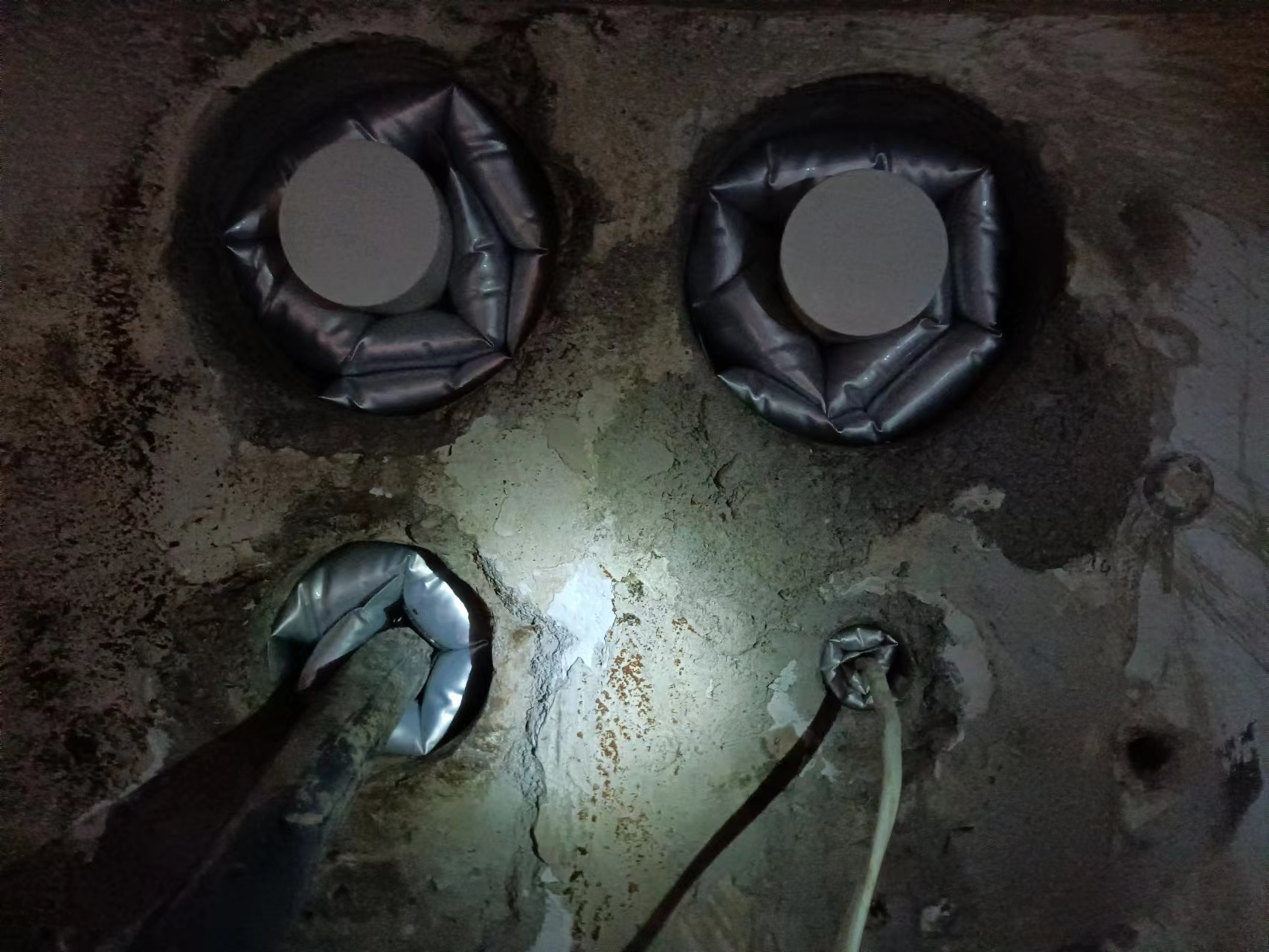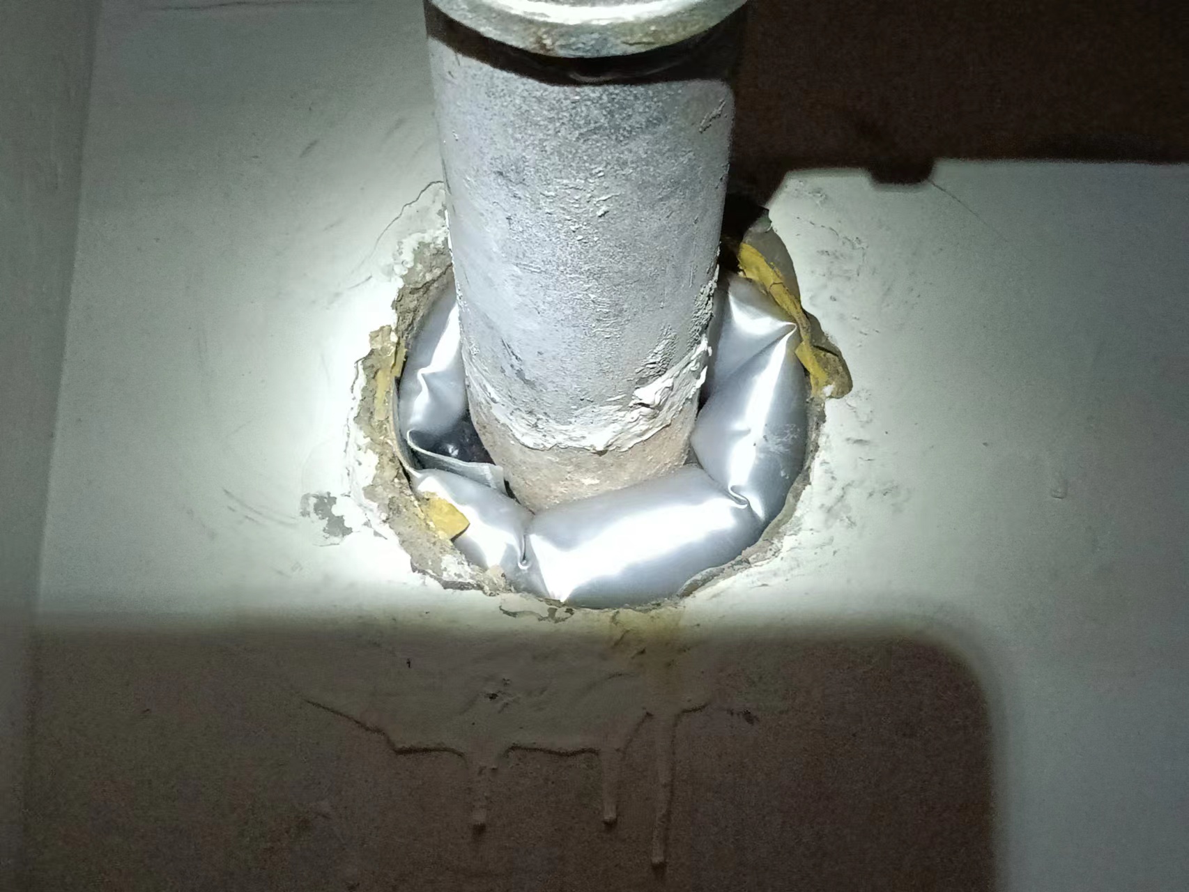 穿墻水管孔防水封堵效果(φ100)