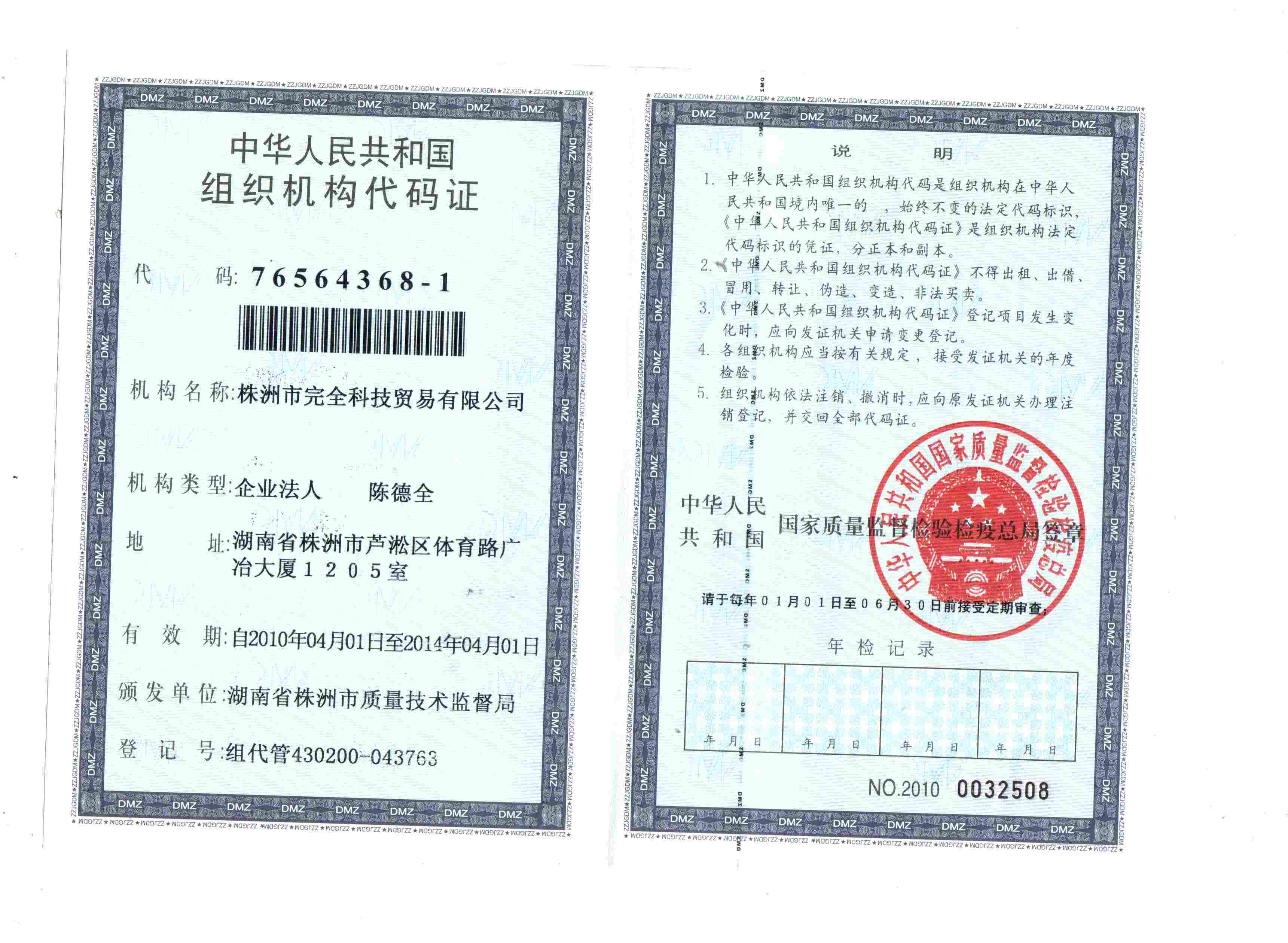 公司名稱變更之后的組織機構代碼證(變更日期:2013.06.14) 公司名稱變更之前的組織機構代碼證,點擊觀看大圖: