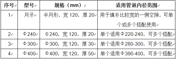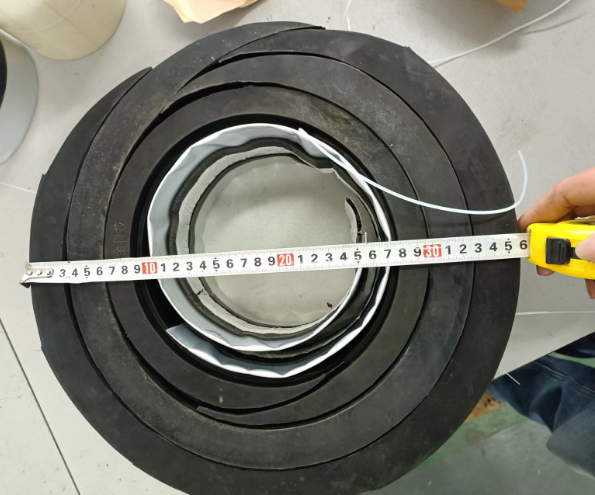 在電纜管孔或索導(dǎo)管孔防水封堵施工中,遇到超大管孔(內(nèi)徑φ220-400mm)時,并且管孔的環(huán)形空隙寬度超過80mm(單邊寬度平均40mm),密封氣囊無法有效填充管孔空隙,這時候就要用到變徑橡膠圈(見下圖),利用多種規(guī)格變徑橡膠圈搭配組合來縮小電纜管孔的空隙寬度。