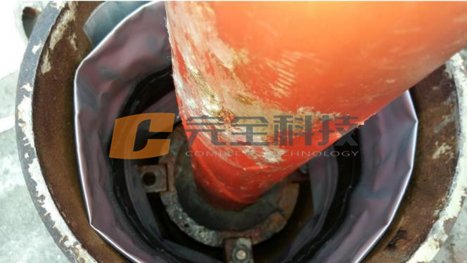 第一步,打開防雨罩,拆除減震器,對(duì)管孔內(nèi)填充的發(fā)泡膠進(jìn)行清除,為安裝防水密封氣囊提供條件。