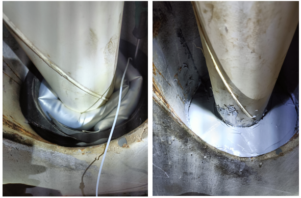 索導管孔的抗震密封對材料和施工方式的提出了較高的要求,目前比較好的方式就是采用密封氣囊進行密封。這種特殊氣囊材料具備較強的耐酸堿、耐穿刺性能和較強的氣壓承受能力,可以有效抵御海上酸堿與潮濕的氣候環境,并能夠緩沖纜索擺動與橋梁振動對密封結構的影響。這種柔性密封材料的可以極大降低使用傳統固化材料或剛性密封材料的養護成本。